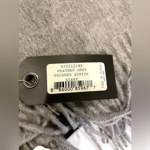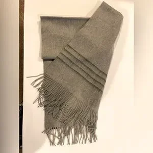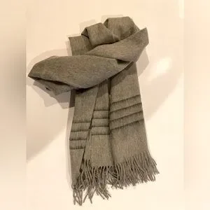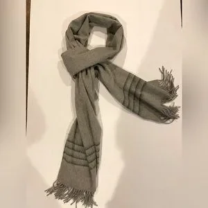 Rag & Bone Merino Wool Scarf. Lightweight ultra-soft wool scarf with twisted fringe edges. Subtle dark gray blurred stripes near the ends.