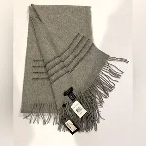 100% Merino Wool - incredibly soft and warm - yet light. Would also make a great wrap. Perfect shade of Heather grey will go with everything.