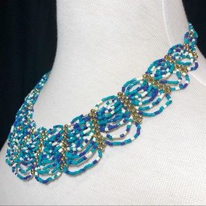 Seed Beads Scalloped Art Bib Multicolor Necklace