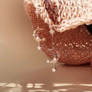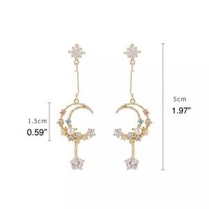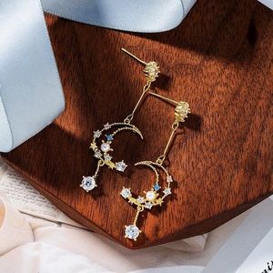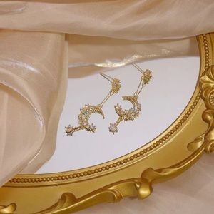 Moon and Star Earring, Celestial Pearl Earrings, Night Sky Drop Dangle