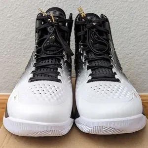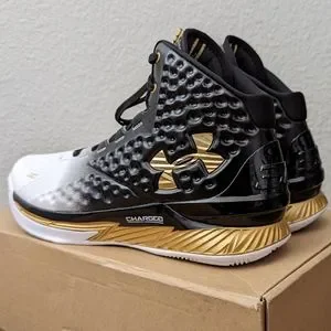 The Under Armour Curry One "MVP" is arguably the most important colorway in Steph’s first signature sneaker series with UA. Not long after Stephen Curry was announced as the Most Valuable Player award winner for the 2014-2015 NBA Season, Under Armour announced the release of a special black and gold edition of the UA Curry One to celebrate Steph’s accomplishment. Like all Curry One models, the MVP Curry One features a dimpled anaFoam upper that is lightweight and breathable with a midsole equipped with UA’s popular Charged Foam cushioning. Before the MVP Curry One hit shelves of retail or any webstore, the MVP himself laced up the regal colorway in the playoffs against the Memphis Grizzlies in May of 2015. However, to build the perfect amount of hype, Steph wore a player exclusive version of the Curry One MVP in Game 2 of the NBA Finals against LeBron James and the Cleveland Cavaliers. The player exclusive version featured textual graphics spread across the heel, while the released pairs stuck with the simplified black and white upper with gold accents and midsole. Needless to say, the Under Armour Curry One "MVP sold out quickly upon release and became one of the most sought after versions of Steph’s first signature sneaker.