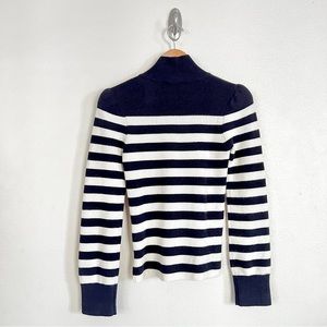Goop G. LABEL Mindy Cashmere Wool Striped Puff Sleeve Turtleneck Sweater in Navy Cream