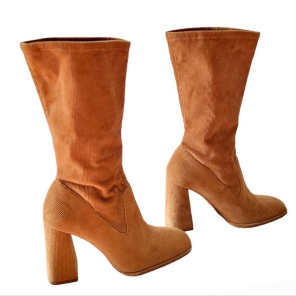 Zara Corduroy High Heel Ankle Boots Size 41.