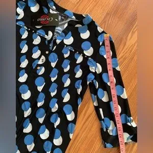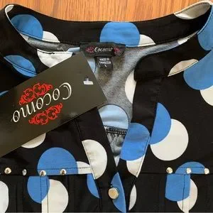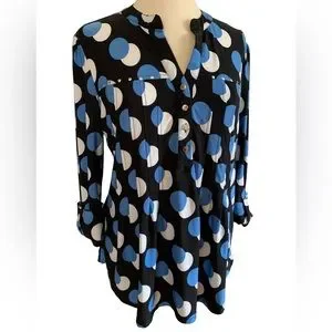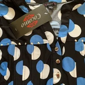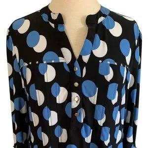 COCOMO Large Black blue white 3/4 sleeve studded women's Pintuck Blouse shirt