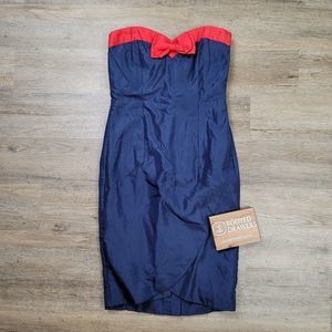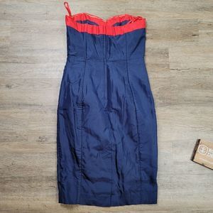 H&M Strapless Silk Dress Red Blue Sweetheart Sleeveless Sheath Casual Cocktail