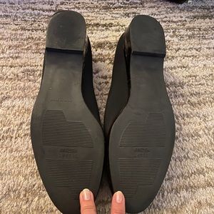 Ladies (and gents!), these shoes are Ah-Mazing!! New without tags. Slip on style. Fabric upper with tortoise-look heel, small platform and bow. Ultra suede lining & rubber sole. One of the tags on the inside is a bit loose (see pic), and there is a slight scuff on the bottom heel from being tried on, but these are brand new! Size 11.