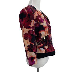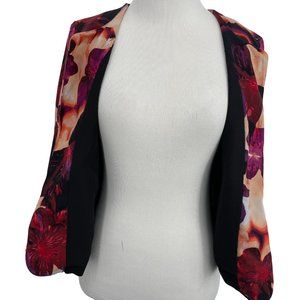 Guess Size X-Small Multicolor Floral Open Front Lightweight Jacket Blazer Purple