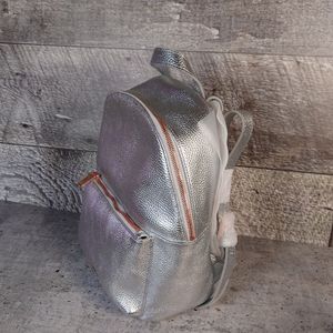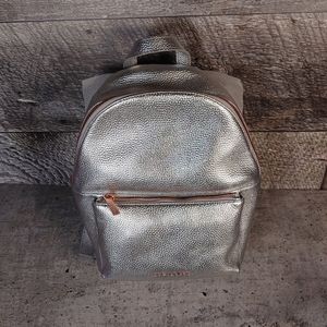 New Ted Baker Silver Pebbled Leather Backpack with rose gold tone hardware