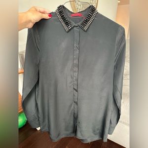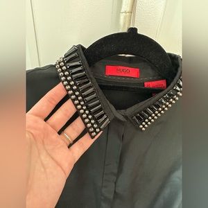 Hugo Boss Black Silk Blouse Size 40 US 8 jewellery collar