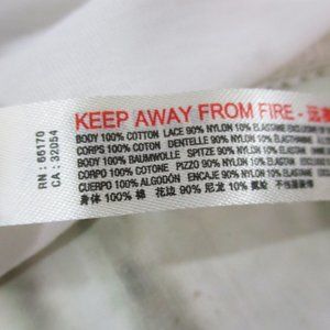 100% Cotton Body with 90% Nylon and 10% Spandex Lace Accents