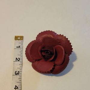 Beautiful red leather Chanel camellia corsage brooch. Comes with Chanel storage box.
