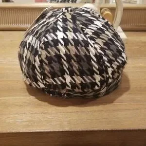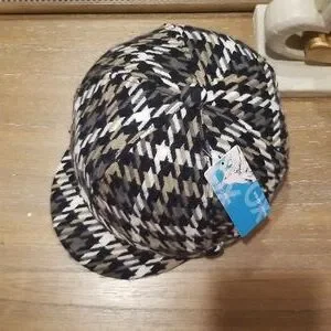 Blk, cream, and taupe houndstooth hat.