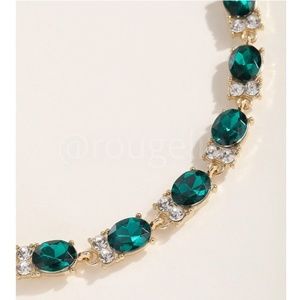 Green Stone Rhinestone Embellished Yellow Gold Tone Bracelet