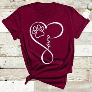 Adorable wine red t-shirt with infinity, love and paw print. Super soft.