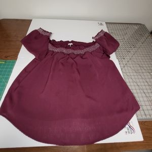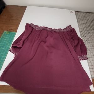 Maurices Womens Ruffled Red Pink Off Shoulder Blouse Shirt