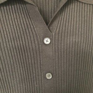 Bring back the late 90s and early 2000s in a rib knit sheath dress that features a polo inspired front button placket and split collar as well as cozy long sleeves.
