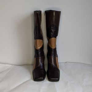 Vintage Brown Patchwork Leather Y2K/90s Block Heel Boots