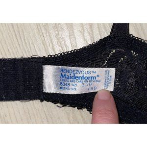 Vtg Vintage Maidenform Rendezvous 8348 Satin and Lace Bra Wire Free 34B Black