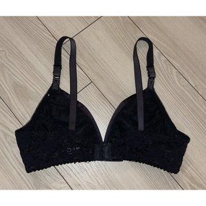 Women’s vintage Maidenform Rendezvous Satin and Lace Wire Free Triangle Cup Bra, black, unlined/unpadded, back close