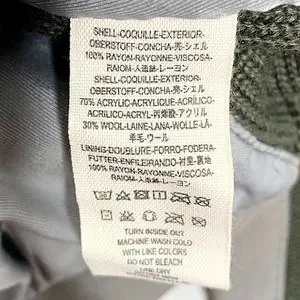 100% rayon shell | acrylic/wool contrast | 100% rayon lining