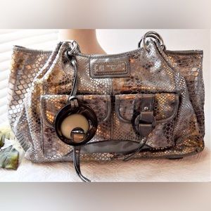 Gorgeous metallic Multicolor in snake print , hard to capture actual colors in pic , handmade genuine leather with a beautiful orange silk interior .