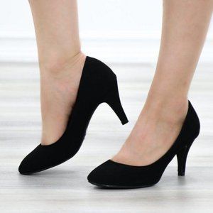 Closed Toe Low Mid Heel Dress Velvet Pump