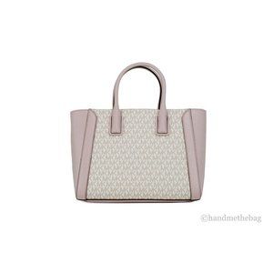 NEW Michael Kors Kali Medium Satchel iPad Case White Rose Gold Signature PVC Bag
