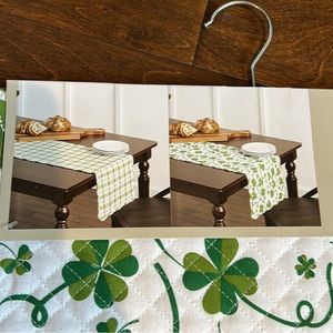 MARTHA STEWART Reversible Table Runner St Patrick’s Day Irish Clover Quilted. On one side there are clovers printed all over and on the other side there is a plaid pattern and . Get ready to welcome spring in your home . Size is 14”x72”