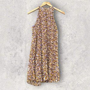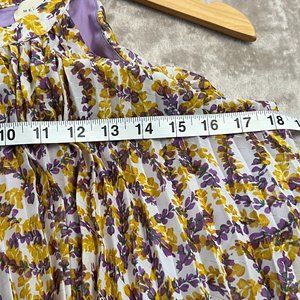 MELLODAY Women's Floral Pleat Dress Size S Sleeveless Yellow Purple