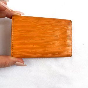 Authentic Louis Vuitton VINTAGE Yellow Epi Leather 4Key Holder Case Code CA0044 Gold-Tone Hardware, Leather Lining with Card Slots .Snap Closure.