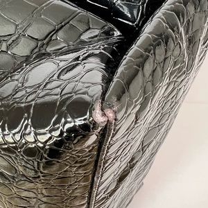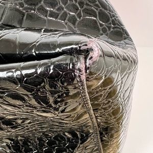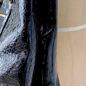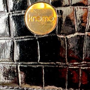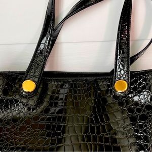 Knomo London Alligator Embossed Shiny Black Tote w Gold Hardware