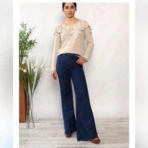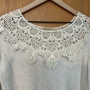 Democracy crochet sweater Large long sleeve top knit sweater lace crochet detail