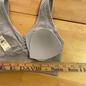 Removable padding. I stupidly ripped tags off but it’s brand new with tag shown in pic. NOTE—-Since they were no longer attached I misplaced the tags recently after taking these pics. :( But it’s brand new with the removable padding. It’s not my size and never worn.