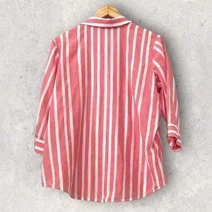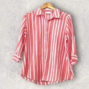 Chico's Women's Top Button Down Shirt Striped Size 1 3/4 Sleeve Silk Blend