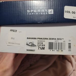 Super fun Sperry Top-Sider Bahama Canvas Women's Shoe 7.5(W) Pink/Orange/Sequins brand-new, in original box! These are your must-have Spring shoes!