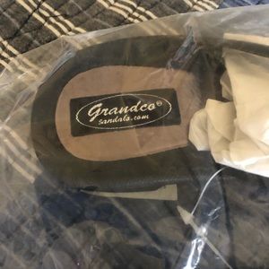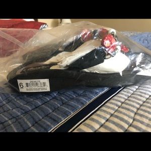NWT GrandCo beaded thong sandals with fashionable red stones, black sole with silver insole, good arch support