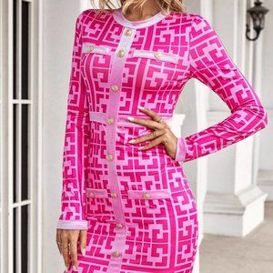 Pink Preppy Womens Unity Geo Print Button Front Bodycon Dress