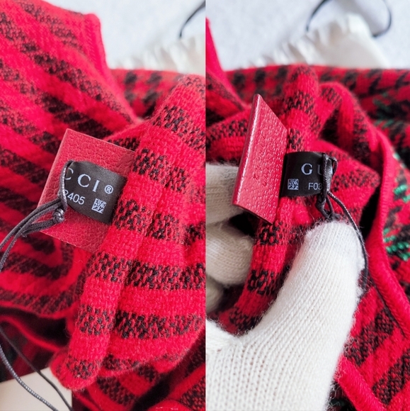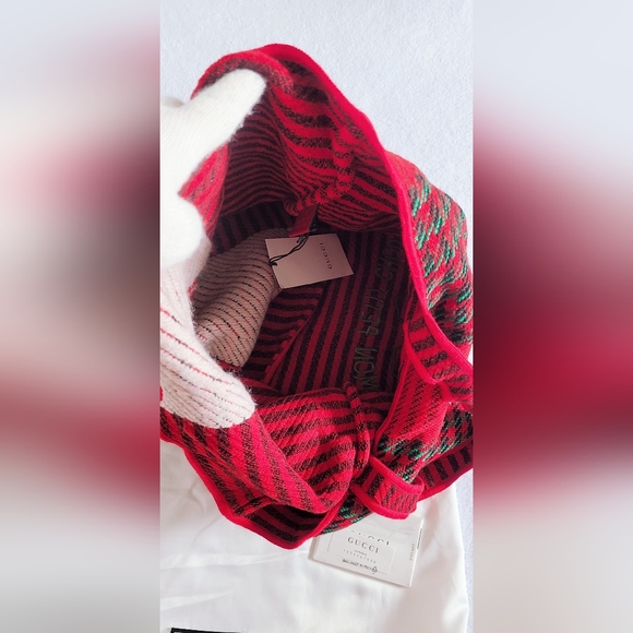 Authentic Gucci cauliflower embroidered houndstooth and stripe Wool tote bag