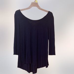 •PINK ROSE• SWEET TEA BY PINK ROSE STRAPPY BACK CRISS CROSS BACK NAVY BLOUSE IN SIZE MEDIUM has 3/4 length sleeves and tunic style(longer hem) top. EUC