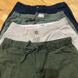 Old Navy/ Gap Shorts Lot. This neutral colored shorts lot were barely worn. Everything is in perfect condition except for the tan pair which have some blue spots on the front part. You can see picture, it’s barely noticeable. There are 3 pairs from Old Navy & 1 pair from the Gap all size 2. Perfect to update your summer wardrobe.