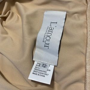 Size 12 (fits like 8-10) From L’Amour Calla Blanche Collection Mermaid Silhouette Beaded Lace Illusion V-Neck Line Structured Bodice Cascading Train Color: Ivory/Light Nude with Skin Illusion