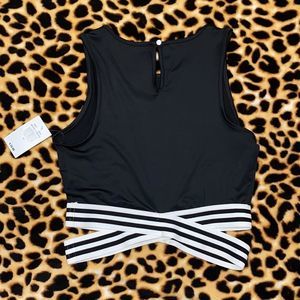 NWT ZELOS striped Tape cropped top from belk also can worn as Athletic workout top... the top elevates the look and wearability for this sporty cropped top...keyhole with button closure... crew neck... sleeveless with a 19in length... size medium... first photo is a stock photo selling black one...