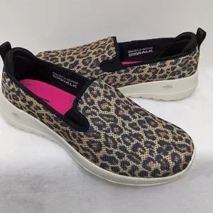 Skechers Super Comfortable Go Walk Joy Fiery shoes. Featuring- Stylish Leopard print, mesh uppers, Pull-On style, responsive 5Gen cushioning, elasticized panels, air cooled Gogo Mat cushioned insoles for added comfort, flexible rubber outsole for added traction, Skechers Logo, and approximately 1.5 inch heels. High quality, style, and exceptional like new condition ( only tried on)๐ฆ