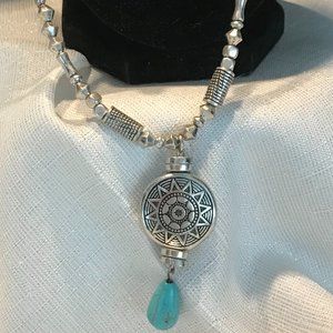 Lovely Turquoise is richly marbled and turquoise pieces are silver beaded to show off the colors.