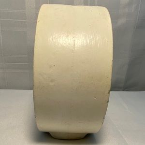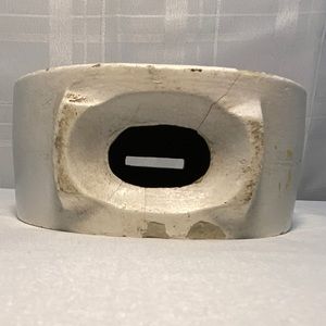 Super funky, flower power style bank 60's or 70's fluorescent colors green, pink and purple. Aries ram March 21 - April 19. The back is the ram with the dates and no color. No stopper. Has 3 chips, 2 on very bottom and 1 on bottom edge on front. Also, some cracks on very bottom as well. Can't really see when sitting on display. (Please see photos for a more visual description) Chalk-Ware tends to be very fragile, so this hollow piece is in pretty great shape for it's age. There is also a dark red spot of paint on the bottom front. Measures - 5" x 5". This is a really a cool piece.