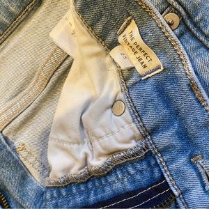 Madewell: The Perfect Vintage Jean - lightish wash with raw hem.