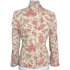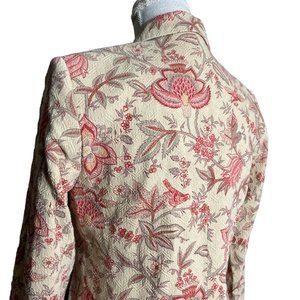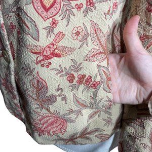 Stunning cotton-silk blend floral jacket. On top of the beautiful botanical print the fabric itself also has a subtle chevron / geometric matelasse textured! Excellent condition. Measurements in photo. Automatic 15% discount on bundles of 2 or more items!