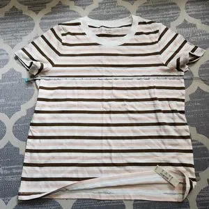 BNWT Madewell SOFT Pink/Brown/White stripe 100% cotton Retro Tee S