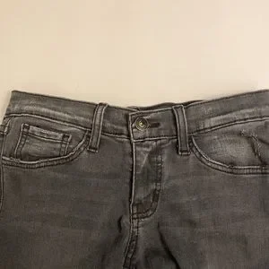 Distressed ( see photo)worn above front pocket, front pocket edge has wear.