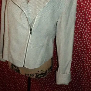Small Black and White checked jacket, with off center front zipper, snap stud embellishments on front near collar and shoulders, Two front pockets